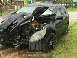 An early morning accident on the Eversham Public Road, East Berbice/Corentyne has left a woman nursing severe injuries to her leg....