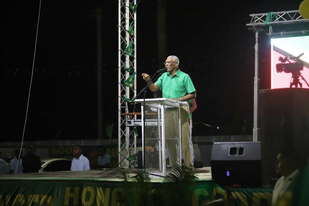 Addressing supporters at the APNU+AFC election rally at the Scottsburg Community Centre Ground in Corriverton Tuesday night, the incumbent President said his administration will implement the recommendations made in the report to eliminate piracy which has affected fishermen for a number of years.