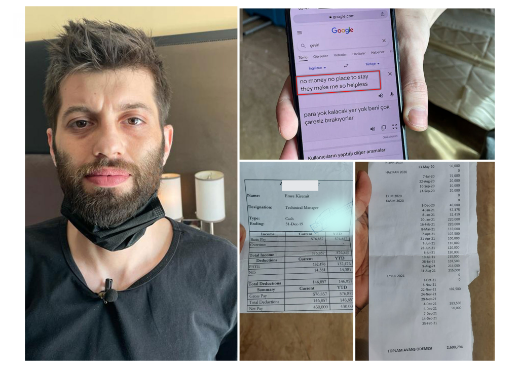 Emre Kiremit knows little English and found it hard to communicate orally but from his poorly kept living space on the top floor of the company, he used a translator on his phone to relate his situation to the News Room.
