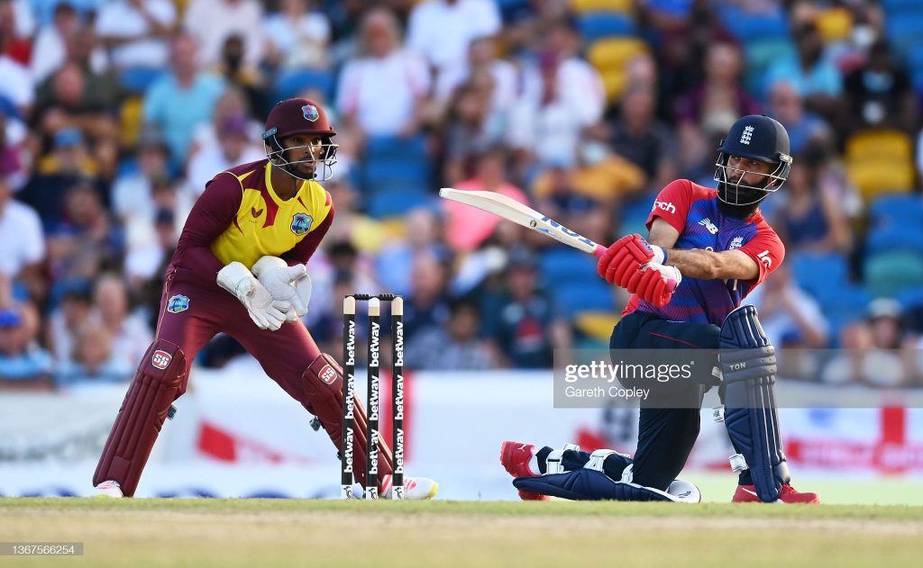 The bowling of Jason Holder and Kieron Pollard troubled England’s batters with nagging consistency before Moeen’s onslaught propelled England to their match-winning total.