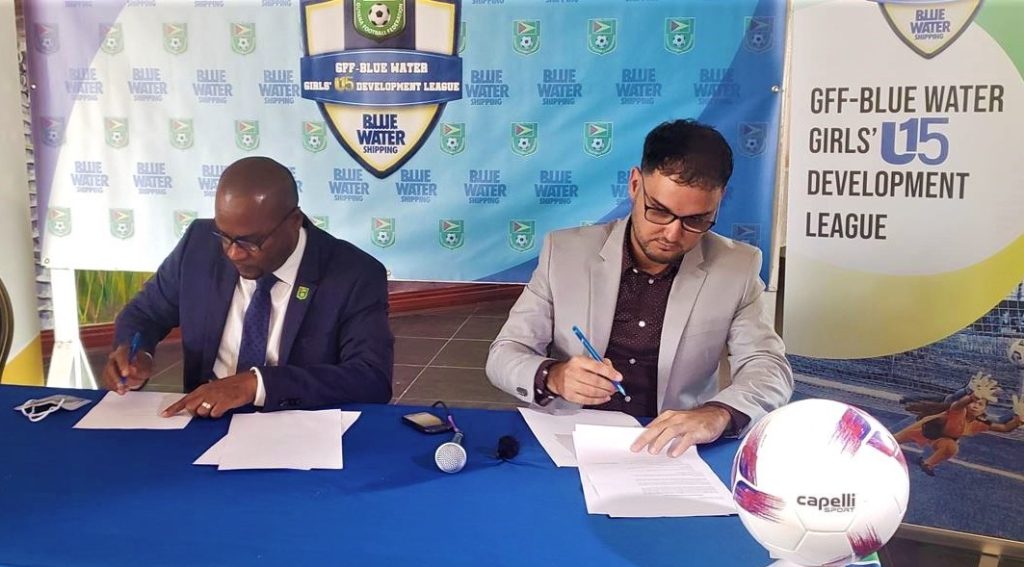 The Guyana Football Federation (GFF) and Blue Water Shipping have signed a five-year Memorandum of Understanding (MoU), which will see the formation of the country’s first Girls’ Under-15 Development League.