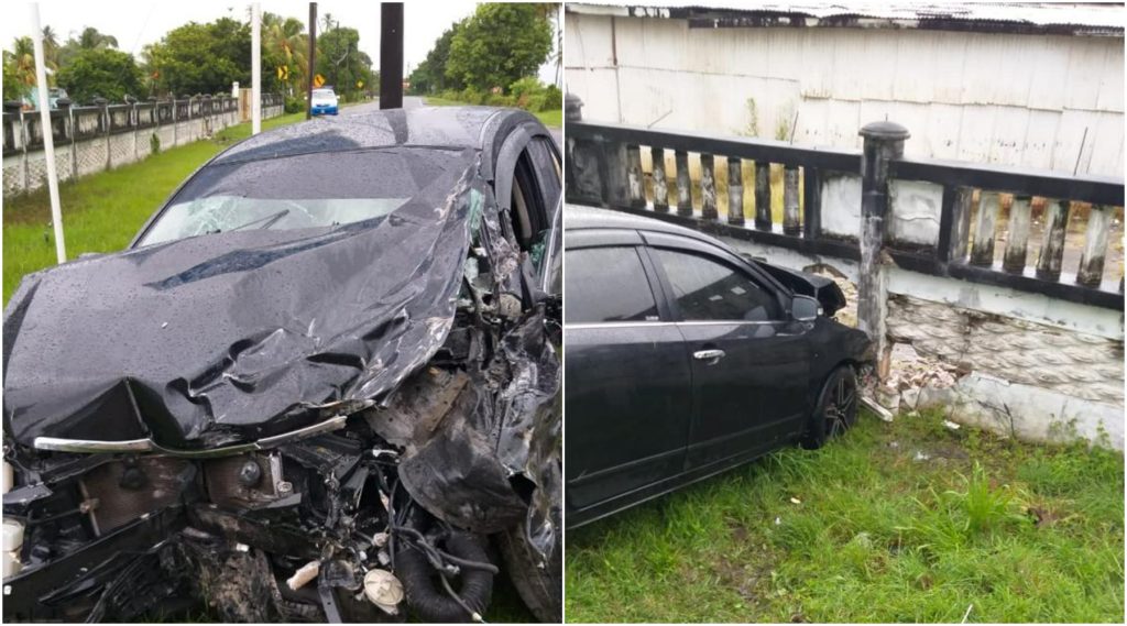Two persons who were in the car – Shamar Abrams, 22, of Canal Number One, West Bank Demerara and Rodwyn Pryce, 23, of Lovely Lass – received injuries about their bodies.