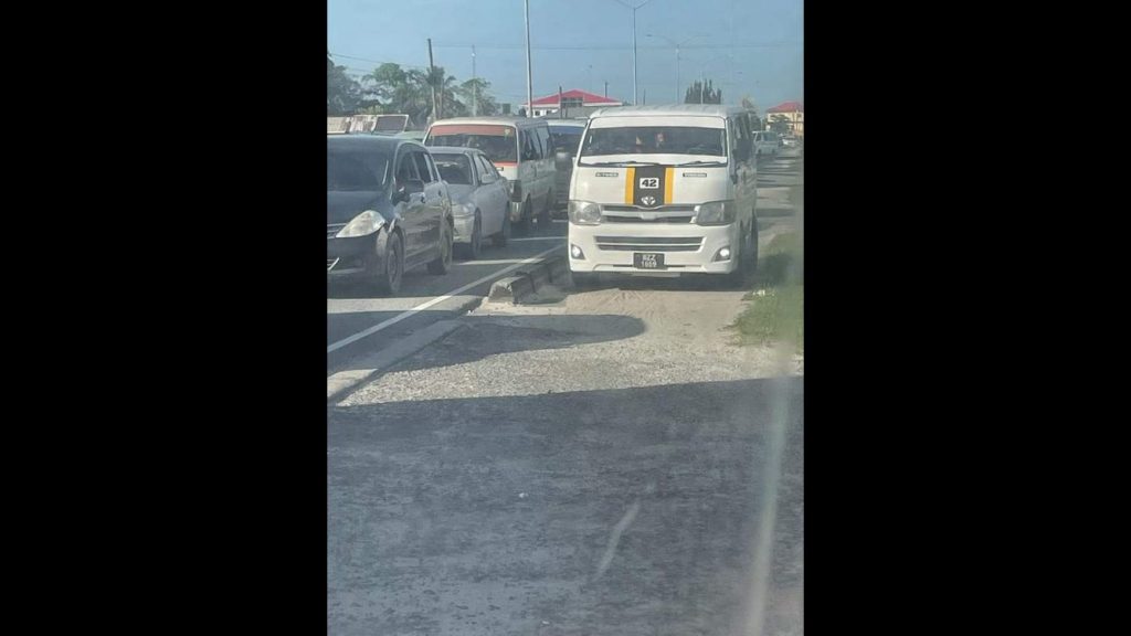 In a photo uploaded to social media on Tuesday, Nunes’ white minibus was seen driving along the Providence public road pavement on the East Bank of Demerara.