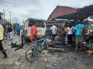 Protesters loot, burn stalls & vehicles at Mon Repos market