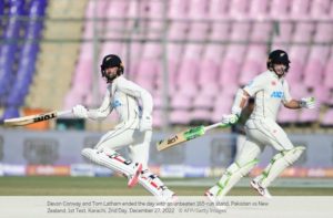Devon Conway and Tom Latham added 165 unbeaten runs in New Zealand’s highest opening stand in Tests in Pakistan – they went past the previous...