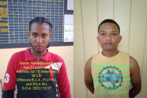 Two men who reportedly robbed the Sridat Service Station located at New Road Vreed-En-Hoop, West Coast Demerara on December 26,...