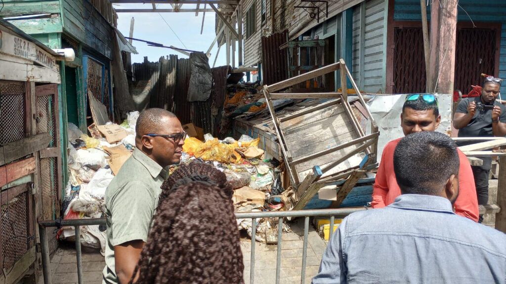 City Engineer, Colvern Venture, Town Clerk (ag), Candace Nelson and the Director of Solid Waste Management accompanied Dharamlall during the walkabout at the market.