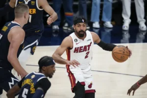The Miami Heat inflicted a first home defeat of the play-off series on the Denver Nuggets to level the NBA...