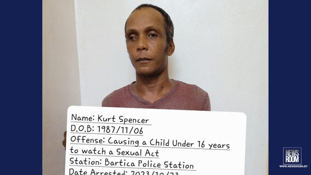 Kurt Spencer, a 45-year-old mason of Bartica, Region Seven was charged on Tuesday and placed on $150,000 bail for allegedly allowing a 12-year-old child to watch a sexual act.