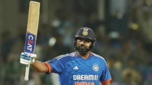 Rohit Sharma became the first man to five T20I hundreds to take India from 22 for 4 to 212 for...