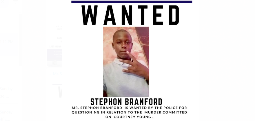 A wanted bulletin was issued for 22-year-old Branford of ‘D’ Field Sophia on Wednesday.