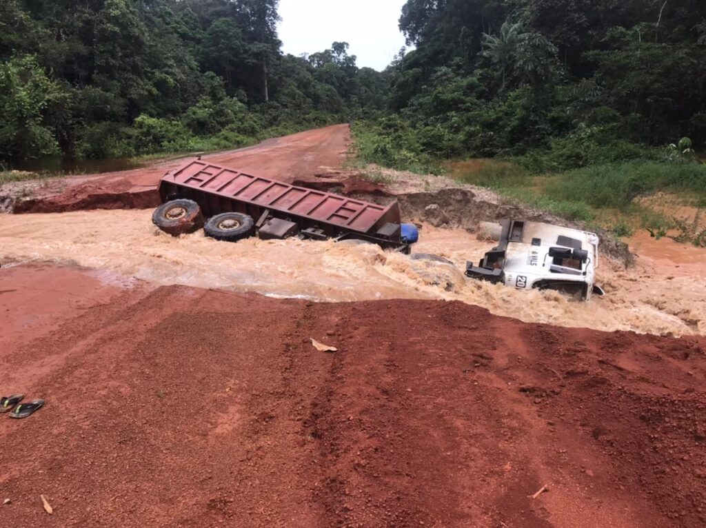 There was significant disruption along the Kurupukari–Lethem Corridor at approximately 3:40 PM today, Wednesday afternoon, when a truck traversing the Kurupukari–Lethem Corridor attempted to cross an eroded section of the roadway within the Iwokrama Concession. This section of the road subsequently collapsed due to sustained pressure from a storm surge caused by heavy rains. It should be noted that the contractor responsible for the maintenance of the area, KP Thomas, was not on site. In the last 48 hours, Ministry of Public Works engineers have alerted all contractors to monitor areas where they have active worksites.