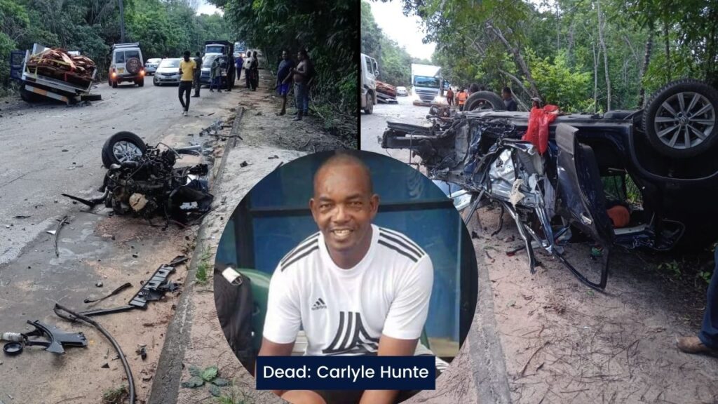 A Linden, Region 10 football coach has died in an accident on the Linden/ Soesdyke Highway while at least five other persons (including three children) are nursing serious injuries.