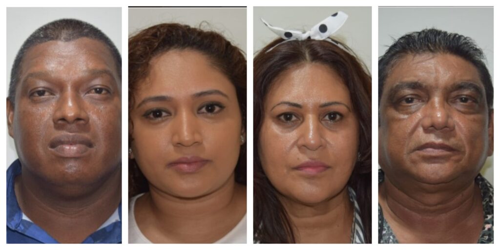 Police Headquarters reported that Saffee Ahmad called ‘Chillo’, 58; Shameena Ahamad, 52; Ashiana Salamalay, 33, all of 38 Roraima Scheme, Versailles, West Bank Demerara, and Ian Jacobis, 44, of 749 Plantation Best, West Coast Demerara, appeared before Magistrate Sunil Scarce. They were not required to plea.