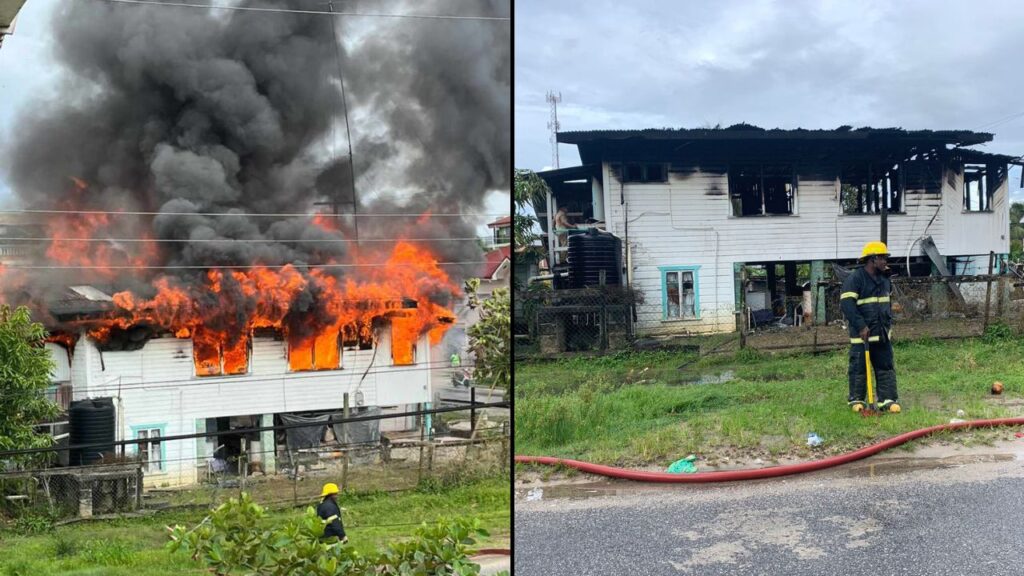 A mid-afternoon fire on Wednesday has left Dawn Hopkinson and her elderly father, Albert Hopkinson, known as ‘Major’, homeless. The house at Third Avenue, Bartica became engulfed in flames around 13:00 hrs with the fire suspected to have started in one of the rooms in the upper flat.