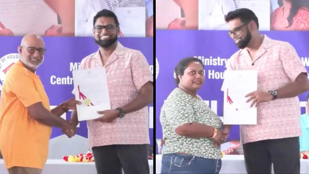 President Ali personally handed out the Certificates of Title during an early morning visit, accompanied by Minister of Housing and Water, Collin Croal and Minister within the Ministry of Public Works, Deodat Indar.