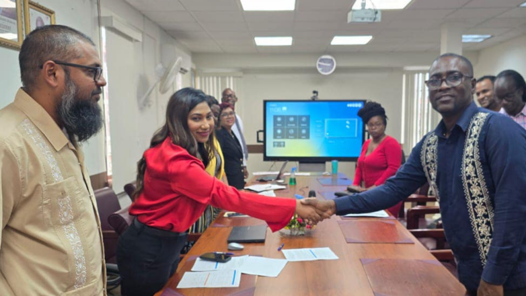 GTU President Mark Lyte and the union’s second Vice President Julian Cambridge inked the agreement on Wednesday with the ministry’s Permanent Secretary Shannielle Hoosein- Outar and Chief Education Officer Saddam Hussain.