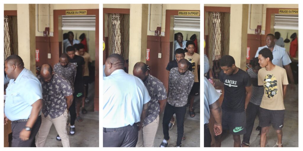 Aaron Alleyne, known as ‘Cats’; Wayne Barker, 34, of Laing Avenue, Georgetown; Damion Barlow, 32, of Sophia; Dwayne Griffith, known as ‘Sheep’, 27; and Daventai Mars, 21, of Middle Road, La Penitence, Georgetown, appeared before Chief Magistrate (ag) Faith McGusty at the Georgetown Magistrates’ Court.