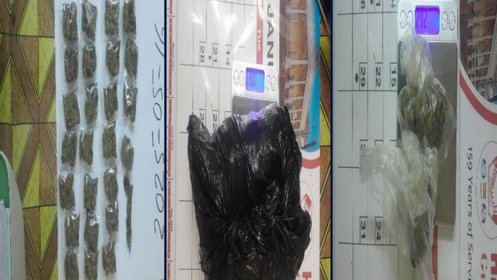 Police Headquarters said the ranks searched the premises and two transparent plastic bags containing a quantity of leaves, seeds, and stems suspected to be cannabis, wrapped in a black plastic bag, were found.