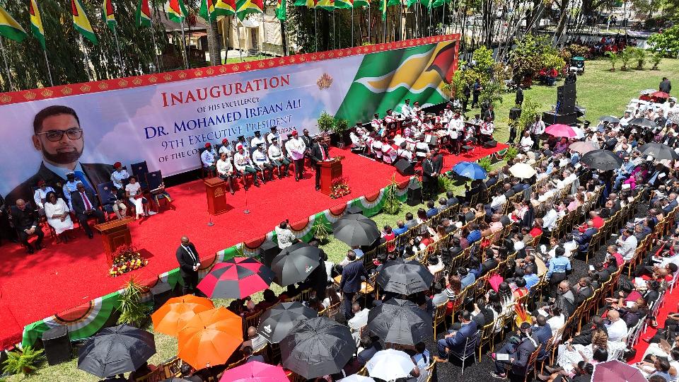 In a posh ceremony on the lawns of State House on Sunday, Dr Ali was sworn in as the 9th Executive President of the Co-operative Republic of Guyana; his second term as President will run from 2025-2030.