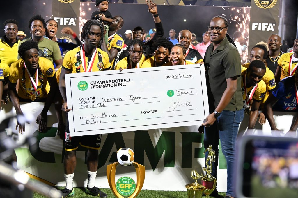 Western Tigers have pulled off one of the great modern upsets in Guyanese football, defeating the formidable Slingerz FC 1-0 to lift the Guyana Football Federation’s Super 16 Cup on New Year’s Day.